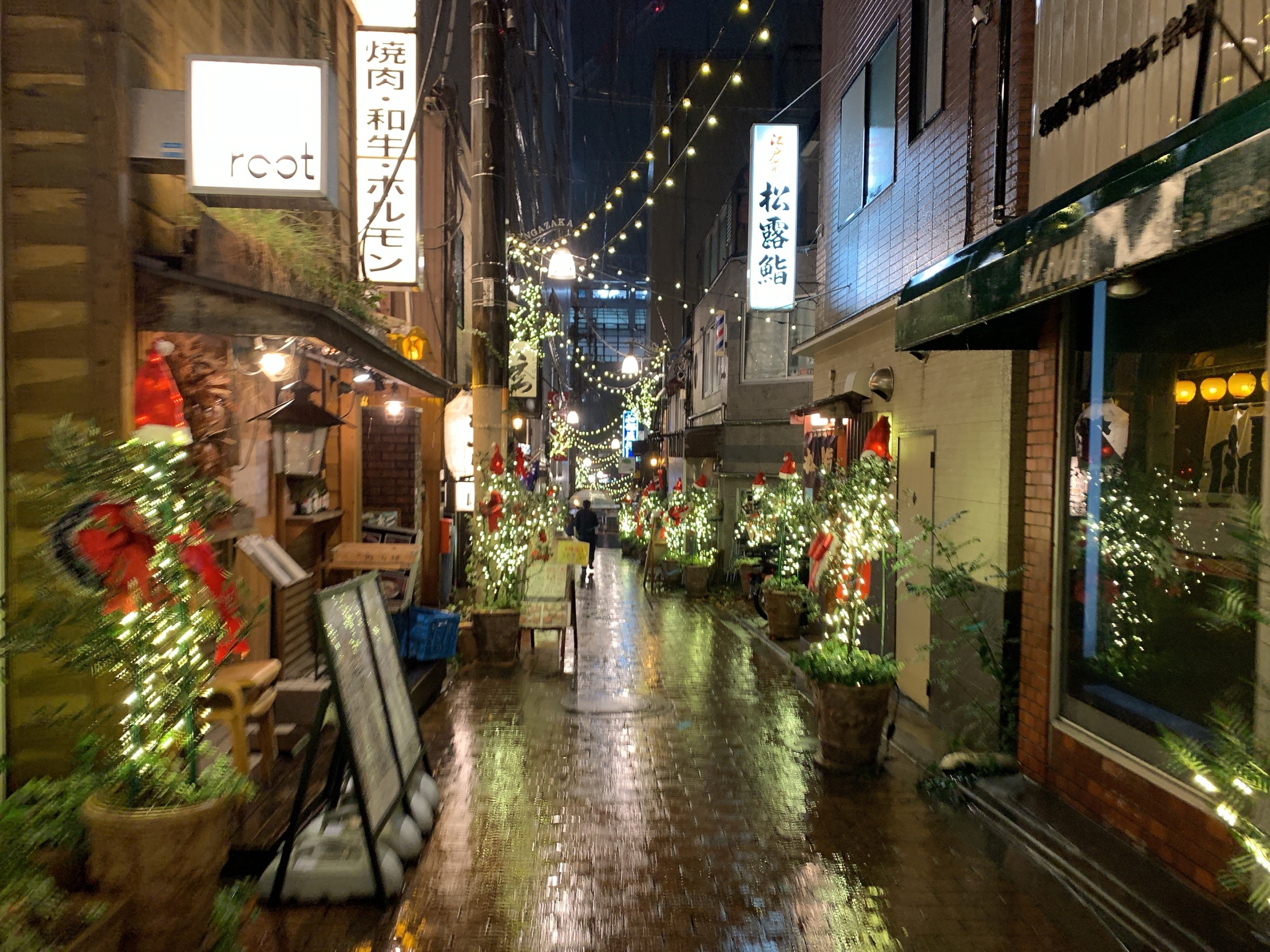事務所から駅に向かう途中にあるレンガ坂。色々な店がひしめく趣のある坂ですが、綺麗にイルミネーションが飾られてました。
